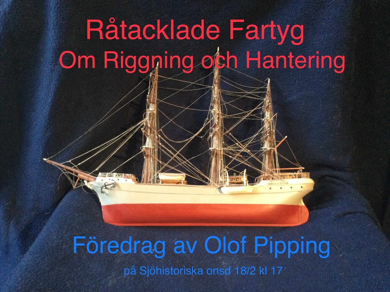 ses SYS på Sjöhistoriska Museet där vi bjuds på föredrag av Olof Pipping där ämnet är Råtacklade fartygs riggning och hantering.