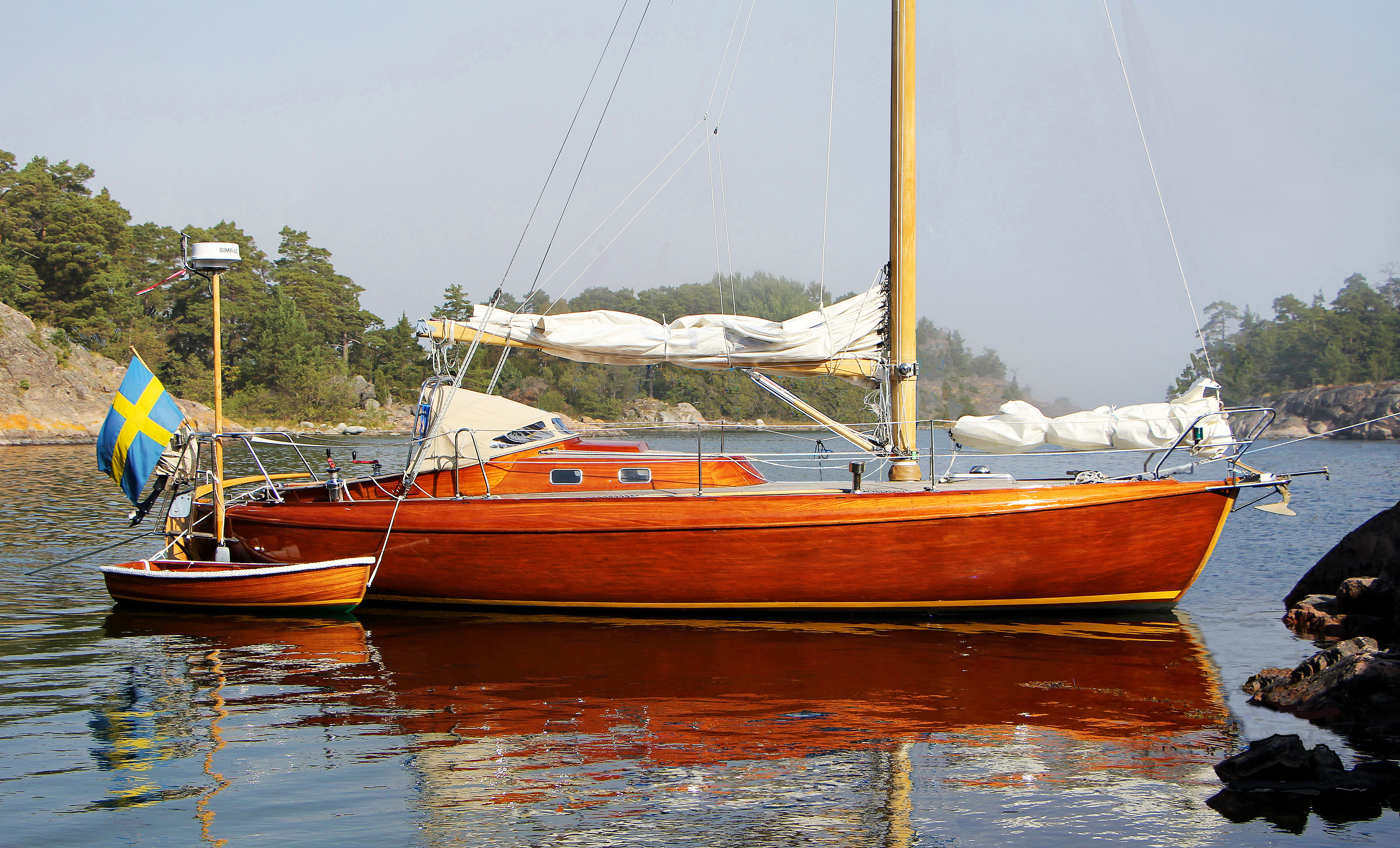 | Material i skrov | Mahogny/iroko |