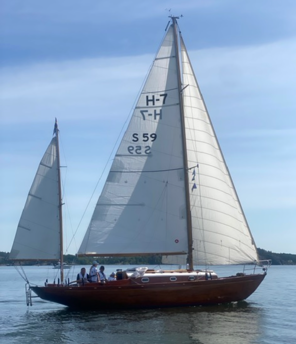 Jag hittade henne norr om Gävle, efter ett halvår slog jag till och kom väl överens med Björn om en affär. Transporterade ner henne till Jungfru Marina, Norra Värmdö där ett renoveringsarbete har startat. Hoppas på att segla henne till säsongen -25.