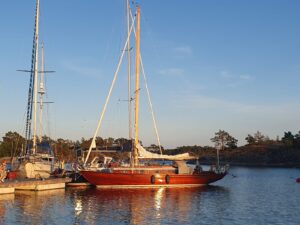 2021 reparerades masttoppen och 2022 lackerades hela masten om med 8 lager Epifanes Clear.